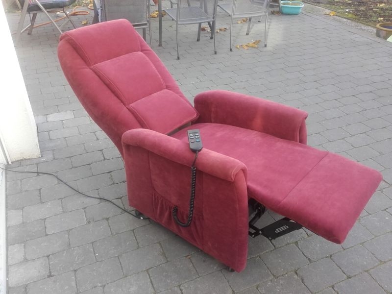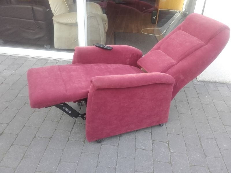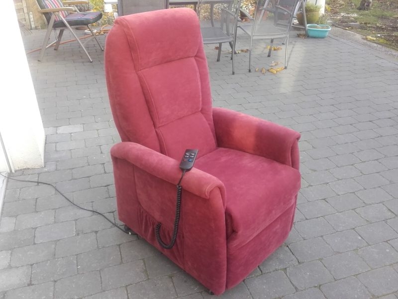 Fernsehsessel aus dem Hause Himolla, Modell 9773 26Y12 mit Aufstehhilfe, Bezug Gewebe Nouvano in der Farbe "MERLOT". Fernsehsessel mit Aufstehhilfe, einfache Bedienung über Fernbedienung. Sessel aus Nichtraucherhaushalt. Sessel für Personen von 155cm bis 175cm Körpergröße, belastbar bis 110Kg Körpergewicht. Sehr komfortabel. Sessel steht auf Rollen und kann auch mal durchs Zimmer geschoben werden, bei der Aufstehhilfe stellt sich der Sessel auf einen Rahmen und kann dann nicht mehr verrutschen. Rückenteil und Fußteil einzel zu steuern und Aufstehhilfe.