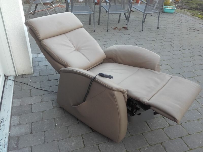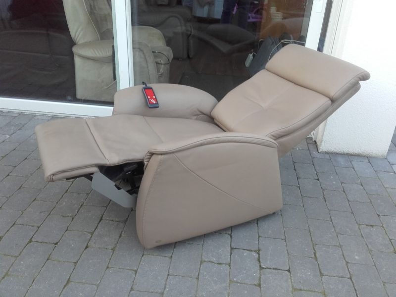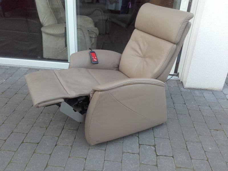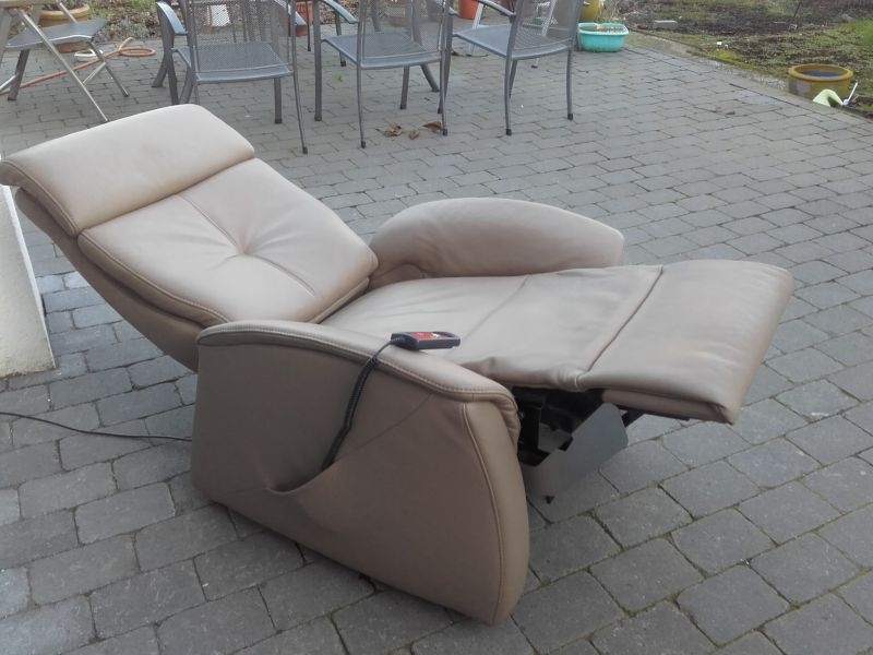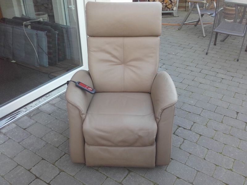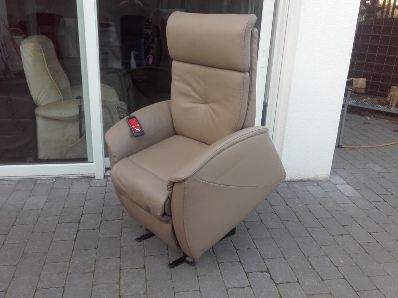 Fernsehsessel aus dem Hause Himolla! Modell 7955 Varioflex mit Aufstehhilfe, für Leute von 165cm bis 185cm Körpergröße, bis 130KG belastbar, Neupreis ca. 2798.-€. Bezug Leder , Farbton "SMOKE". Fernsehsessel mit Aufstehhilfe, Motoren für angenehmen Komfort. Einfache Bedienung über beleuchtete Fernbedienung. Rückenlehne und Beinablage jeweils einzeln anzusteuern, Kopfteil manuell verstellbar, sehr komfortabel. Sessel steht auf Rollen und kann auch mal durchs Zimmer geschoben werden, bei der Aufstehhilfe stellt sich der Sessel auf einen Rahmen und kann dann nicht mehr verrutschen.