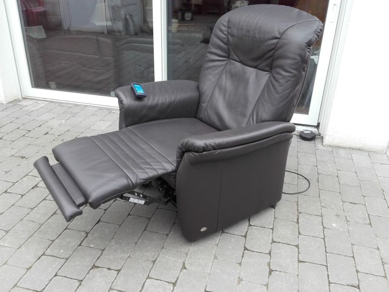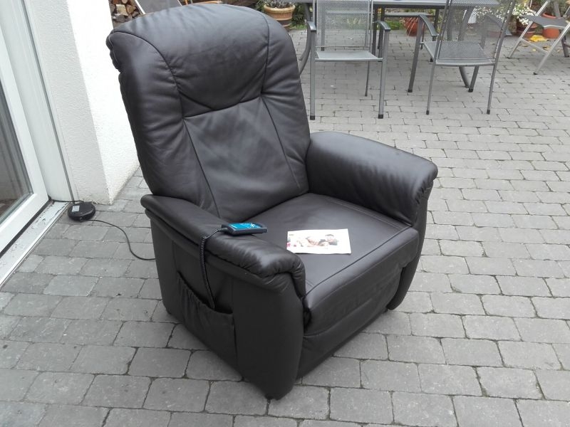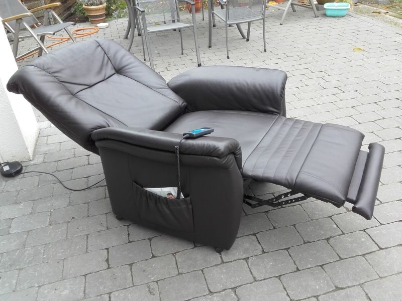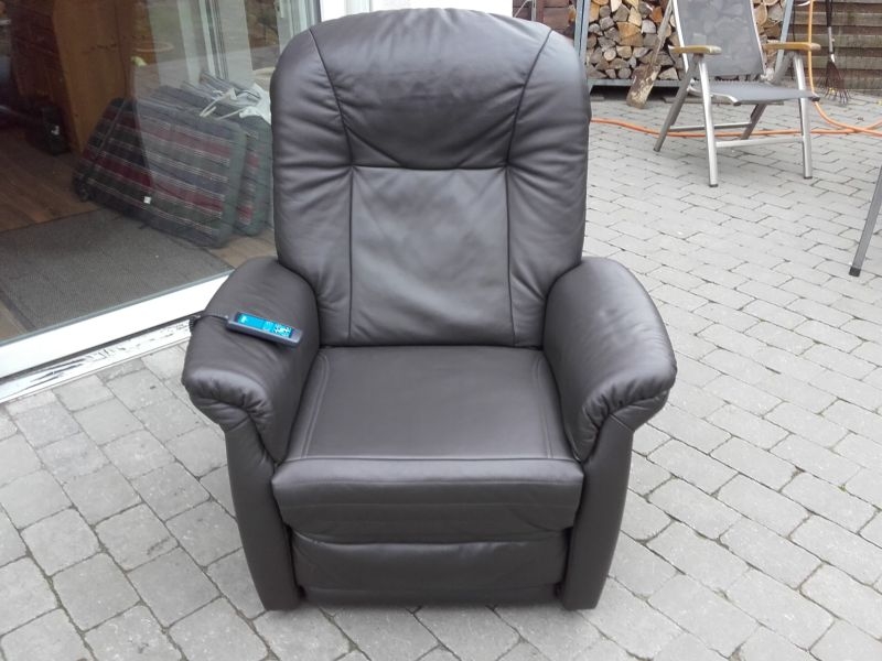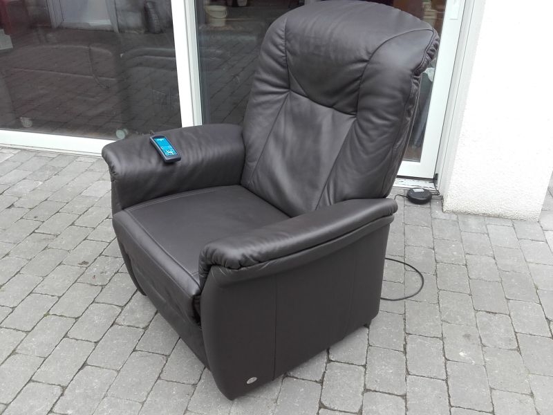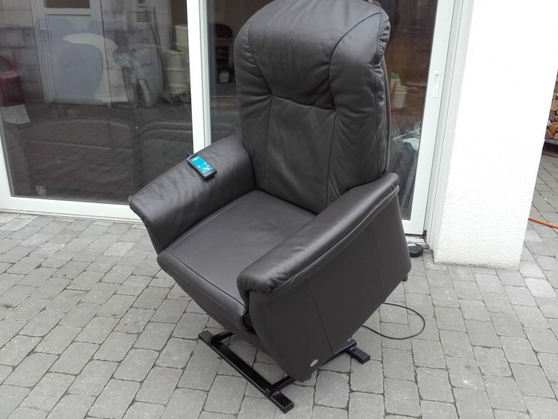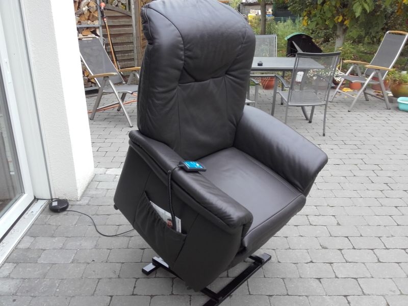 Neuwertiger schöner gepflegter XL-Sessel aus dem Hause Himolla mit Aufstehhilfe bis 160KG. Modell 7706 24T42 Leder schwarz Farbton "KAFFEE". Guter Zustand, technisch einwandfrei, Sessel für große Menschen von 170cm bis 190cm, breite Sitzfläche 55cm und bis 160KG belastbar! Betriebsanleitung vorhanden. Fernsehsessel mit Aufstehhilfe und Liegeposition, 3 Motoren für angenehmen Komfort, Fußteile, Rückenlehne und Aufstehhilfe einzeln steuerbar, Kopfteil manuell verstellbar. Bei der Aufstehhilfe stellt sich der Sessel auf einen Rahmen und kann dann nicht verrutschen. Der Sessel kann bis zu 160kg heben. Einfache Bedienung über beleuchtete Fernbedienung. Kommt aus tierfreiem Nichtraucherhaushalt.