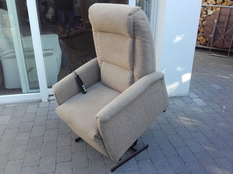 Fernsehsessel aus dem Hause Himolla, Modell 9773 27Y12 mit Aufstehhilfe. Bezug Stoff in der Farbe "BEIGE". Fernsehsessel mit Aufstehhilfe, einfache Bedienung über Fernbedienung. Sessel für Personen von 160cm bis 180cm Körpergröße, belastbar bis 110Kg Körpergewicht. Sehr komfortabel. Sessel steht auf Rollen und kann auch mal durchs Zimmer geschoben werden, bei der Aufstehhilfe stellt sich der Sessel auf einen Rahmen und kann dann nicht mehr verrutschen. Sehr komfortabel und einfach zu bedienen. Rückenteil und Fußteil einzel zu steuern und Aufstehhilfe.