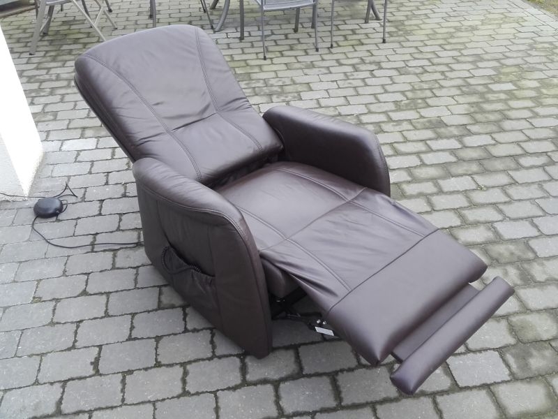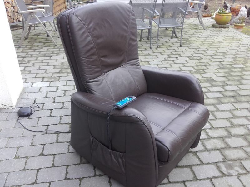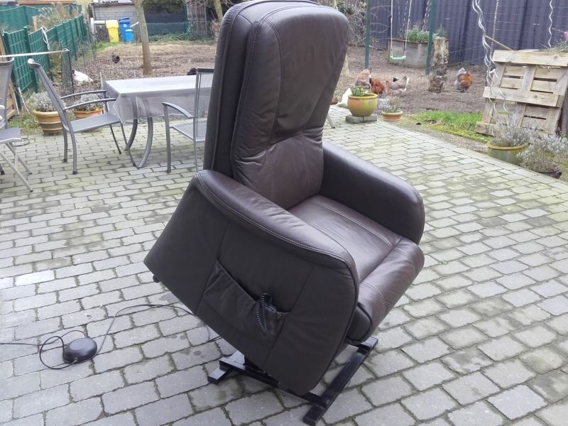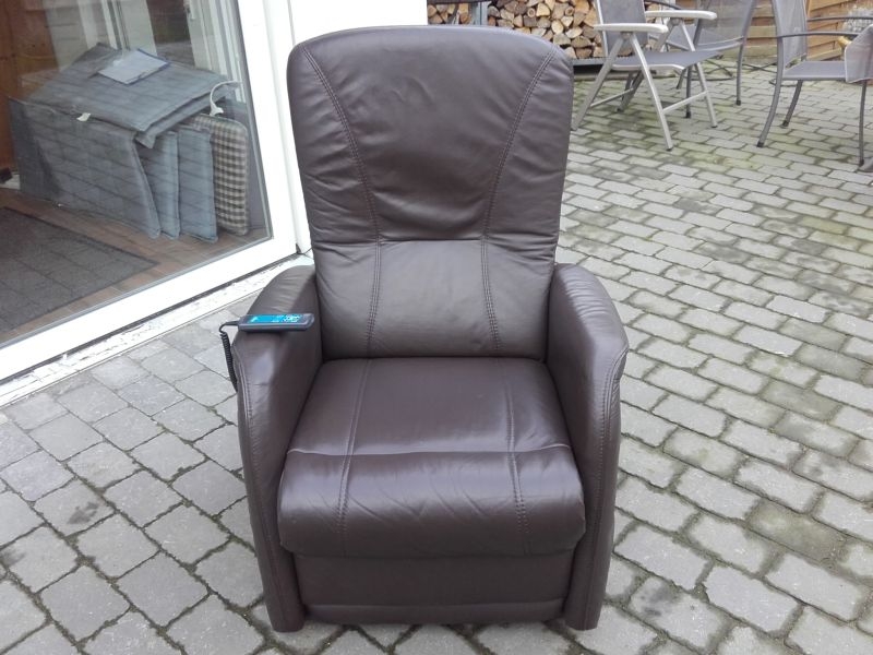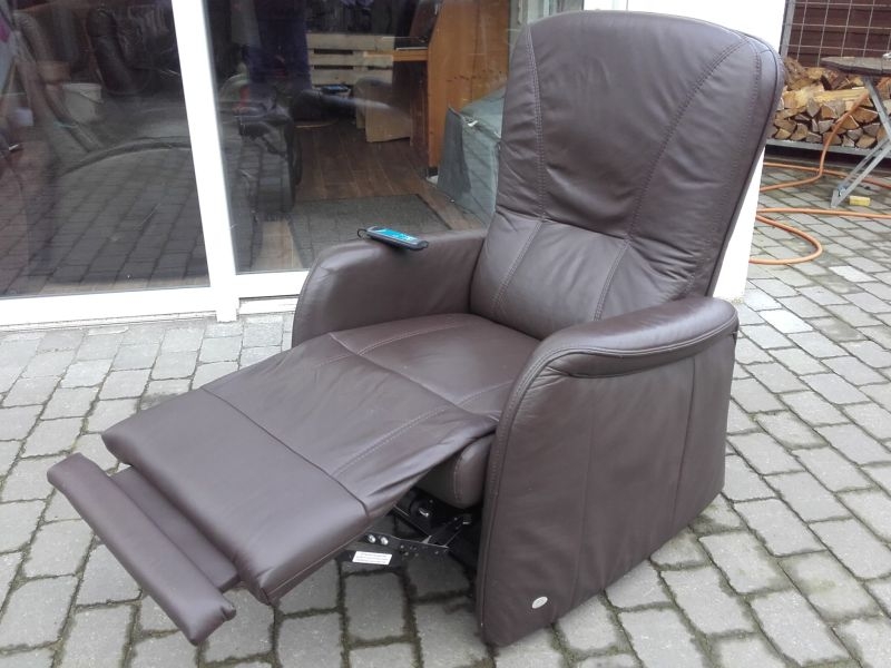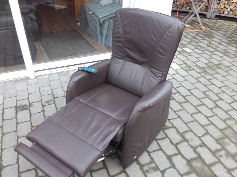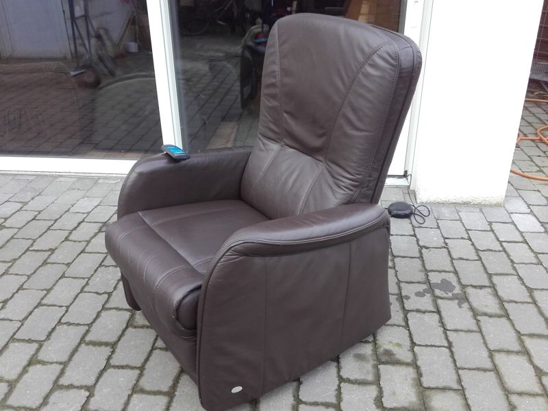 Komfortabler Ledersessel aus dem Hause Himolla. Sehr guter Zustand, wenig genutzt, Neupreis ca. 3600.-€. Modell 7568 23T10 MAXI, in gutem Zustand, Bezug Lederin der Farbe Braun, Farbton "MARON". Fernsehsessel mit Aufstehhilfe, 3 Motoren für angenehmen Komfort. Einfache Bedienung über beleuchtete Fernbedienung. Rückenlehne und Beinablage jeweils einzeln anzusteuern. Für Personen von 175cm bis 190cm. Sehr komfortabel. Sessel steht auf Rollen und kann auch mal durchs Zimmer geschoben werden, bei der Aufstehhilfe stellt sich der Sessel auf einen Rahmen und kann dann nicht mehr verrutschen.