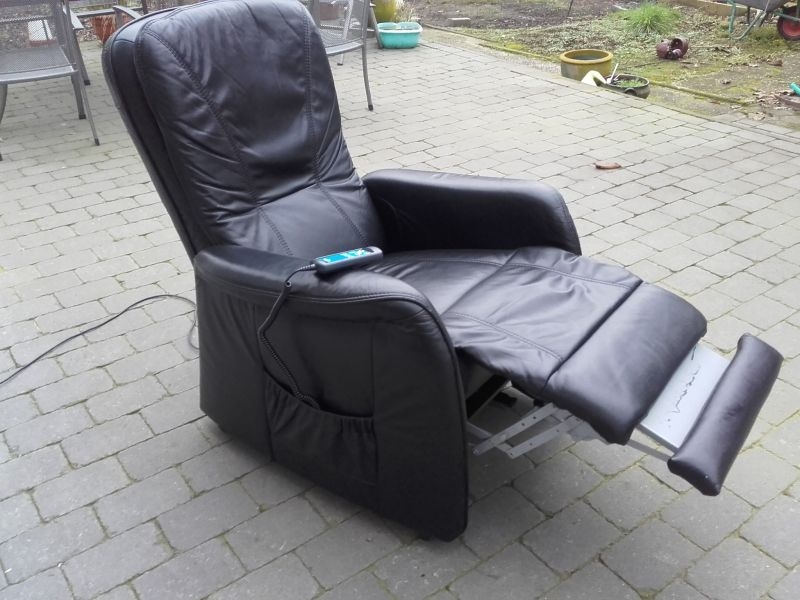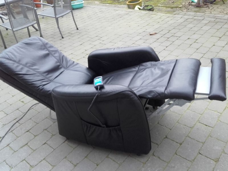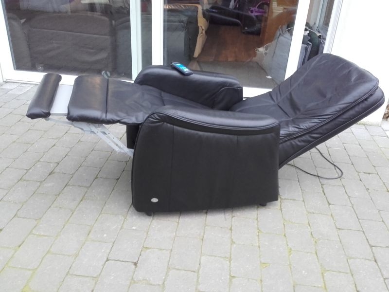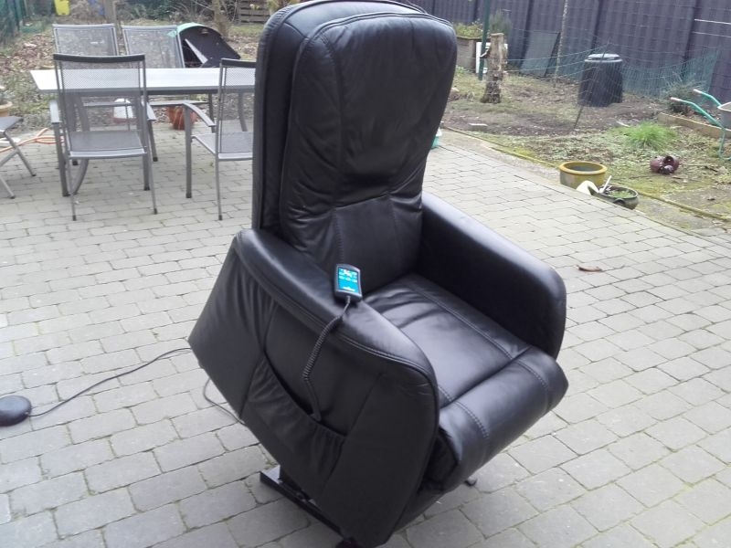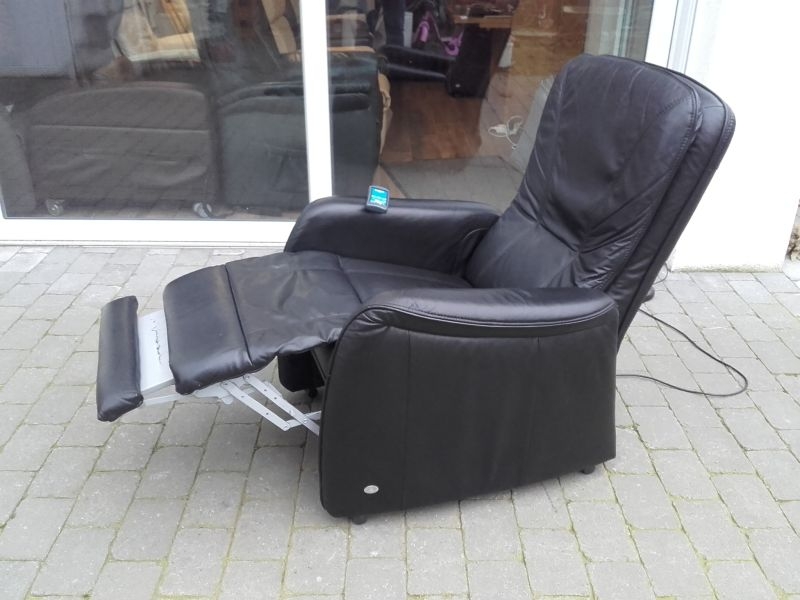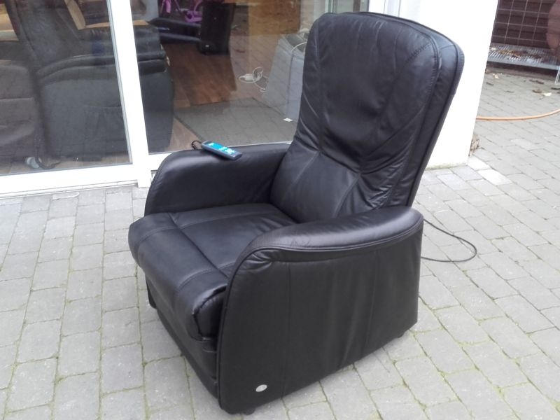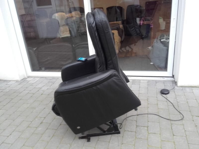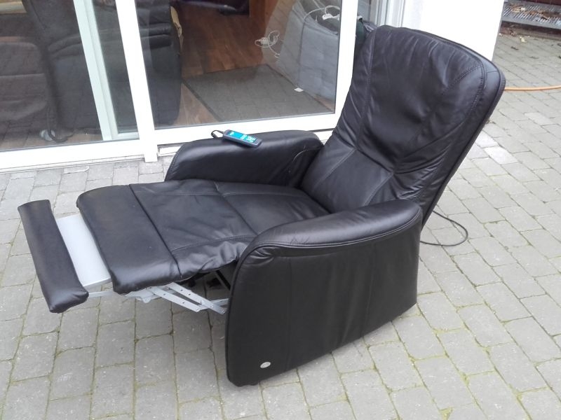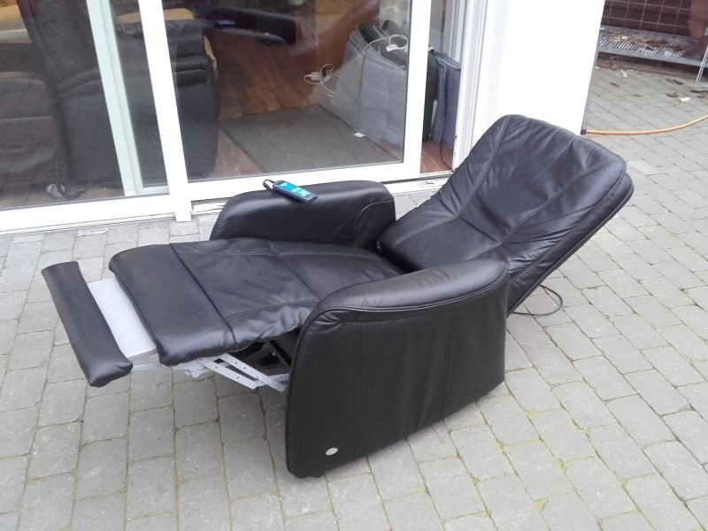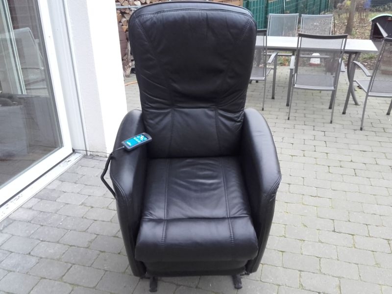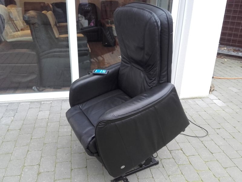 Komfortabler Fernsehsessel aus dem Hause Himolla. Modell 7685 37N40 MAXI, in sehr gutem Zustand, Bezug Leder in der Farbe schwarz, Farbton "Espresseo", NP 2998 €. Fernsehsessel mit Aufstehhilfe, 3 Motoren für angenehmen Komfort. Einfache Bedienung über beleuchtete Fernbedienung. Rückenlehne und Beinablage jeweils einzeln anzusteuern. Aufstehhilfe und Herz Waage Funktion, verlängerte Fußablage. Für Personen von 175cm bis 190cm. Sehr komfortabel. Sessel steht auf Rollen und kann auch mal durchs Zimmer geschoben werden, bei der Aufstehhilfe stellt sich der Sessel auf einen Rahmen und kann dann nicht mehr verrutschen.