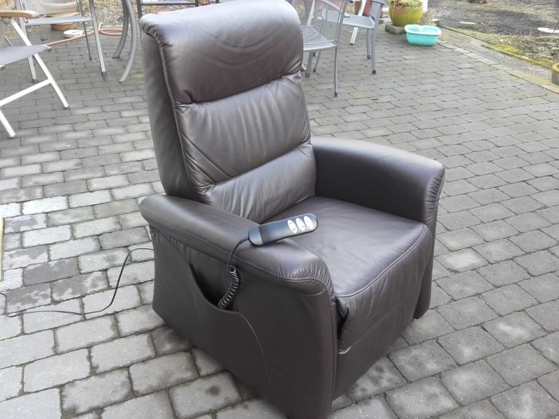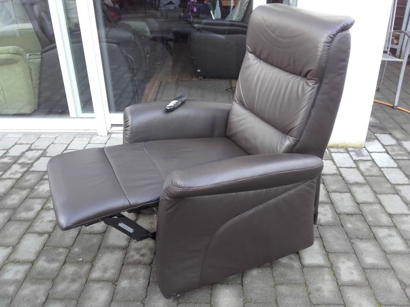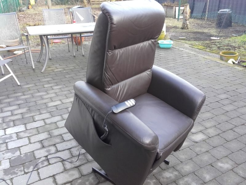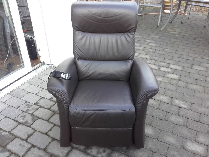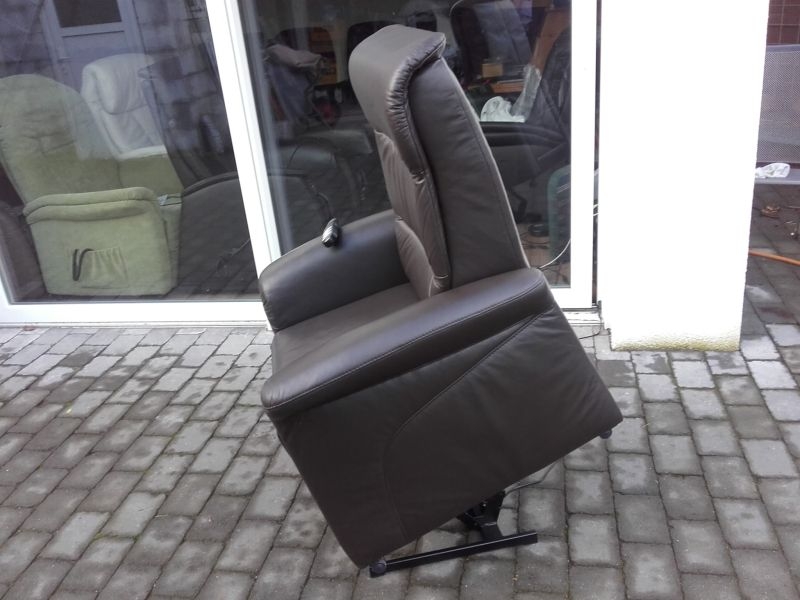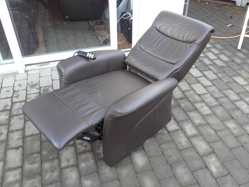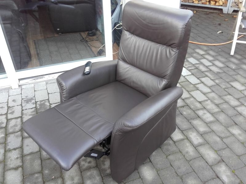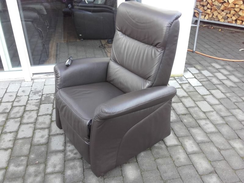 Neuwertiger Fernsehsessel aus dem Hause Himolla, Modell 8300 25Y42 mit Aufstehhilfe, Top Zustand 4 Jahre alt. Bezug Leder braun in der Farbe "TORRO BRAUN". Fernsehsessel mit Aufstehhilfe, einfache Bedienung über Fernbedienung. Sessel für Personen von 160cm bis 180cm Körpergröße, belastbar bis 110Kg Körpergewicht. Sehr komfortabel. Sessel steht auf Rollen und kann auch mal durchs Zimmer geschoben werden, bei der Aufstehhilfe stellt sich der Sessel auf einen Rahmen und kann dann nicht mehr verrutschen. Kopfteil manuell verstellbar, Rückenteil und Fußteil einzeln elektrisch zu steuern und Aufstehhilfe.