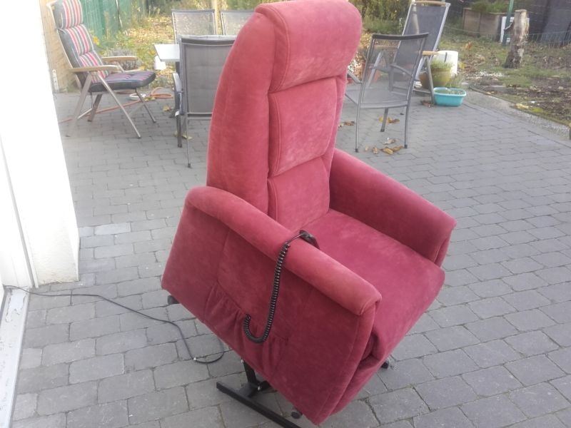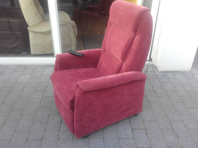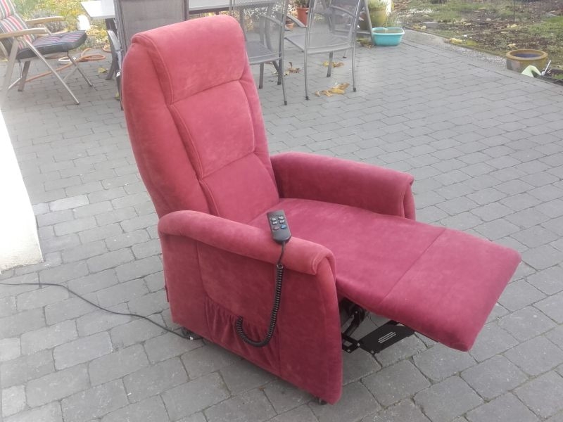Fernsehsessel aus dem Hause Himolla, Modell 9773 26Y12 mit Aufstehhilfe, Bezug Gewebe Nouvano in der Farbe "MERLOT". Fernsehsessel mit Aufstehhilfe, einfache Bedienung über Fernbedienung. Sessel aus Nichtraucherhaushalt. Sessel für Personen von 155cm bis 175cm Körpergröße, belastbar bis 110Kg Körpergewicht. Sehr komfortabel. Sessel steht auf Rollen und kann auch mal durchs Zimmer geschoben werden, bei der Aufstehhilfe stellt sich der Sessel auf einen Rahmen und kann dann nicht mehr verrutschen. Rückenteil und Fußteil einzel zu steuern und Aufstehhilfe.