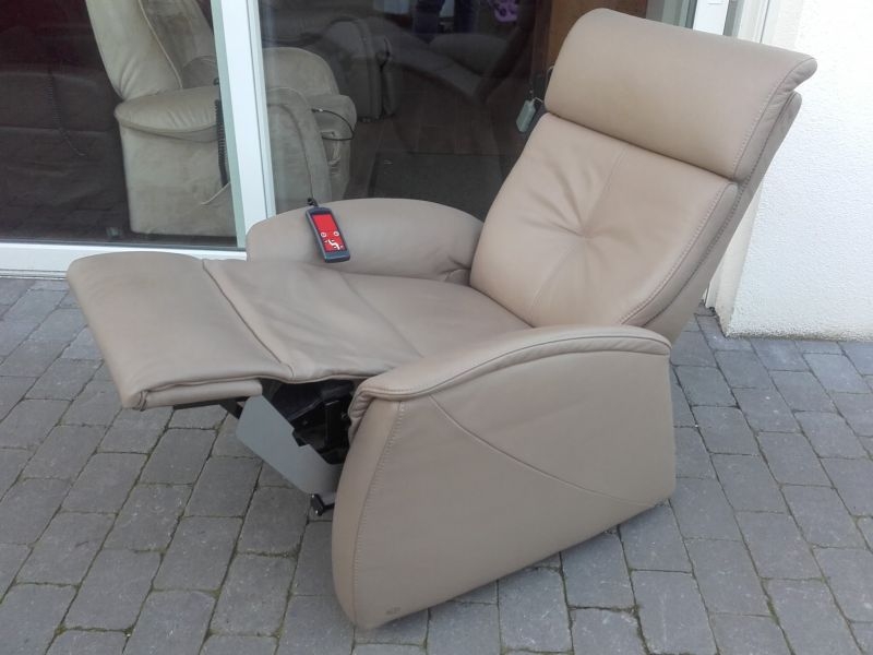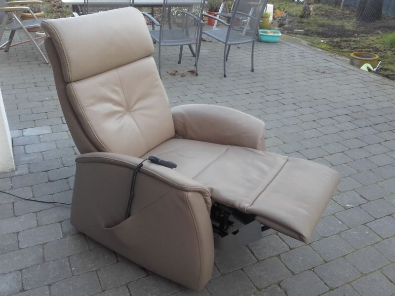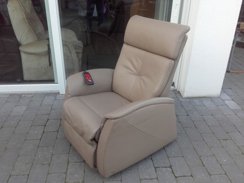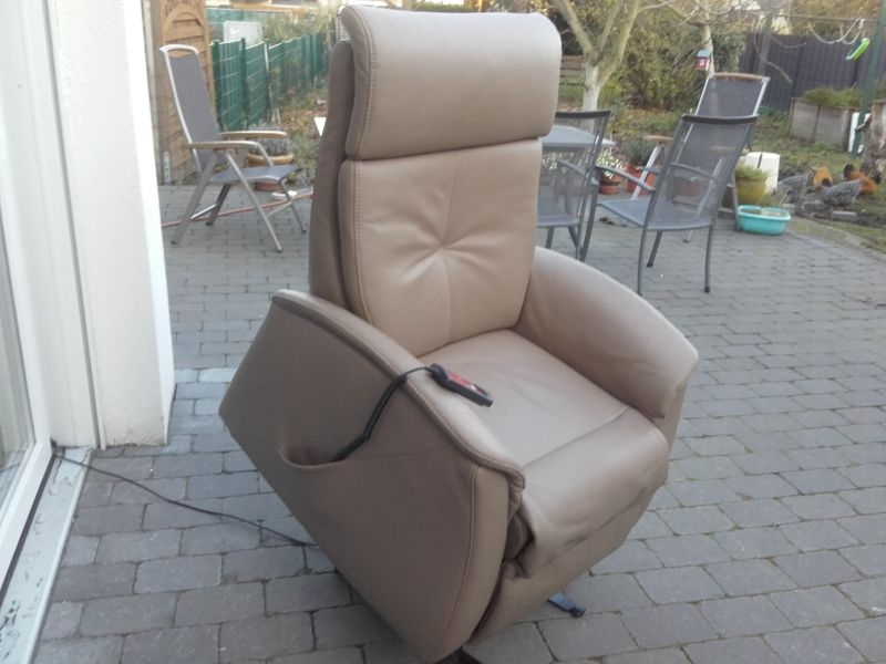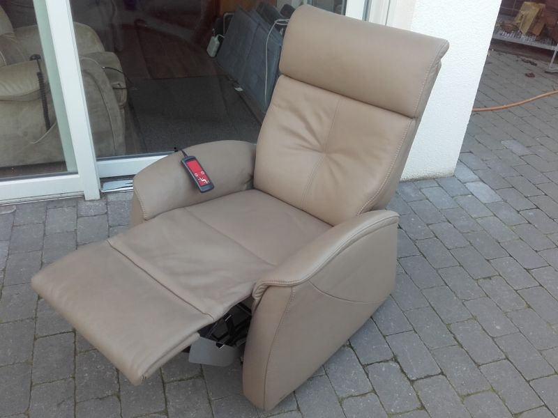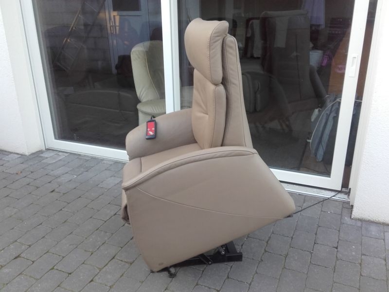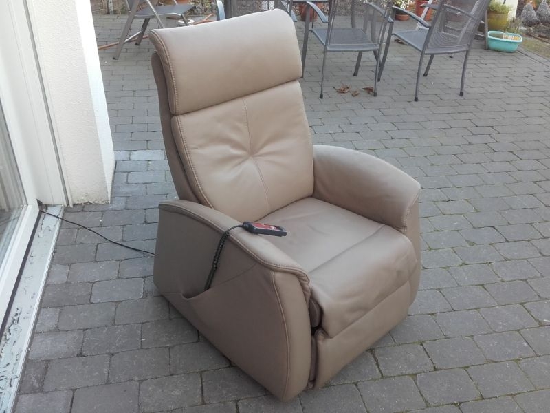 Fernsehsessel aus dem Hause Himolla! Modell 7955 Varioflex mit Aufstehhilfe, für Leute von 165cm bis 185cm Körpergröße, bis 130KG belastbar, Neupreis ca. 2798.-€. Bezug Leder , Farbton "SMOKE". Fernsehsessel mit Aufstehhilfe, Motoren für angenehmen Komfort. Einfache Bedienung über beleuchtete Fernbedienung. Rückenlehne und Beinablage jeweils einzeln anzusteuern, Kopfteil manuell verstellbar, sehr komfortabel. Sessel steht auf Rollen und kann auch mal durchs Zimmer geschoben werden, bei der Aufstehhilfe stellt sich der Sessel auf einen Rahmen und kann dann nicht mehr verrutschen.