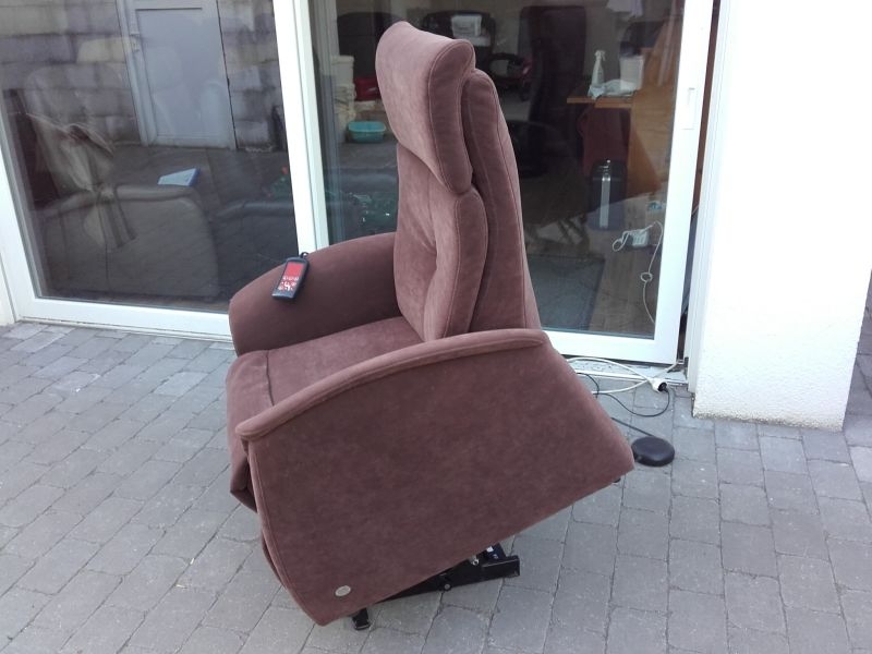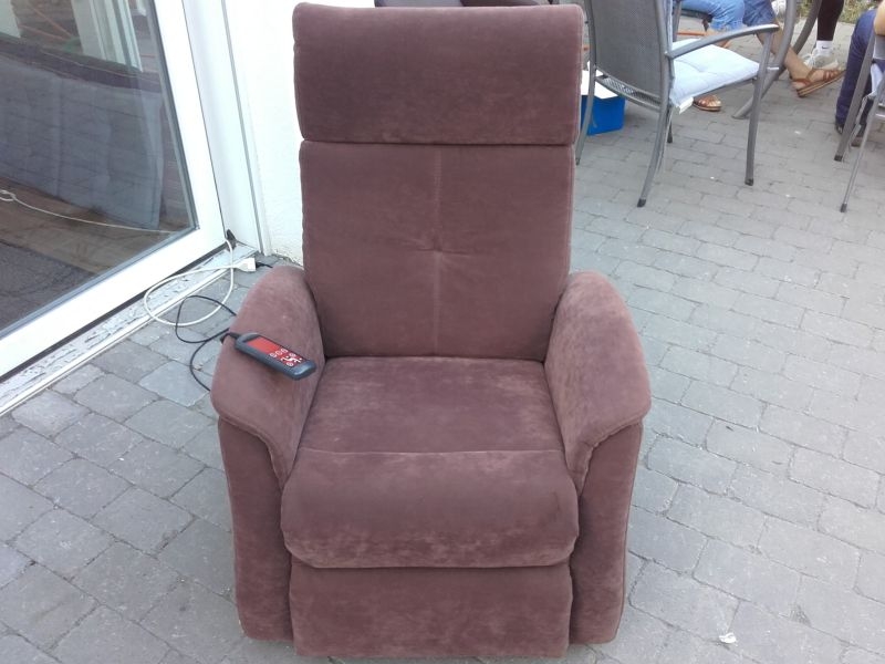 Warum neu kaufen wenn gebraucht und fast wie neu.... Fernsehsessel aus dem Hause Himolla! Modell 7955 26P10 mit Aufstehhilfe, für Leute von 165cm bis 185cm Körpergröße, bis 130KG belastbar, Neupreis ca. 2795.-€. Bezug Stoff Nouvano, Farbton "BRASIL". Fernsehsessel mit Aufstehhilfe, Motoren für angenehmen Komfort. Einfache Bedienung über beleuchtete Fernbedienung. Rückenlehne und Beinablage jeweils einzeln anzusteuern, Herz Waage Position und Aufstehhilfe, Kopfteil manuell verstellbar sehr komfortabel. Sessel steht auf Rollen und kann auch mal durchs Zimmer geschoben werden, bei der Aufstehhilfe stellt sich der Sessel auf einen Rahmen und kann dann nicht mehr verrutschen.