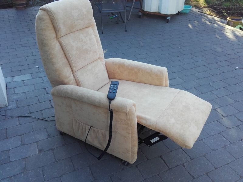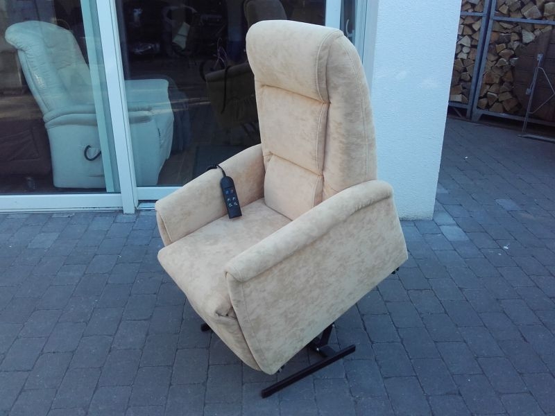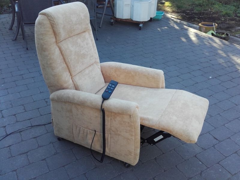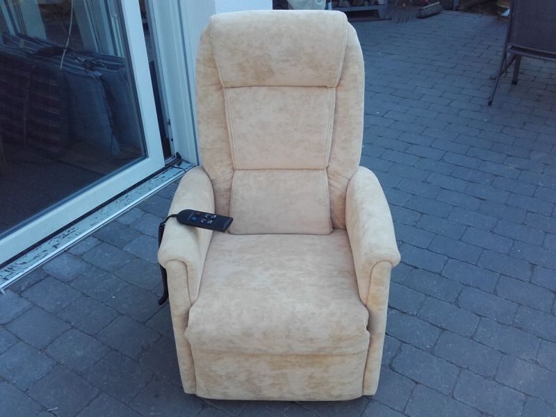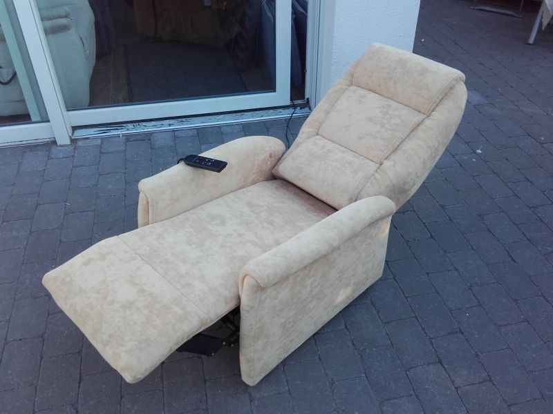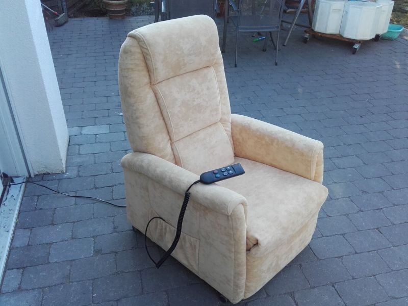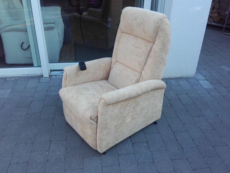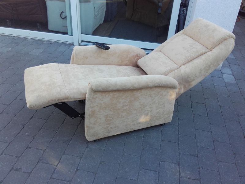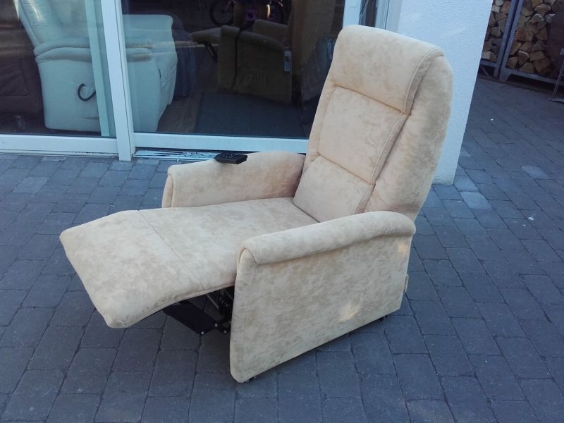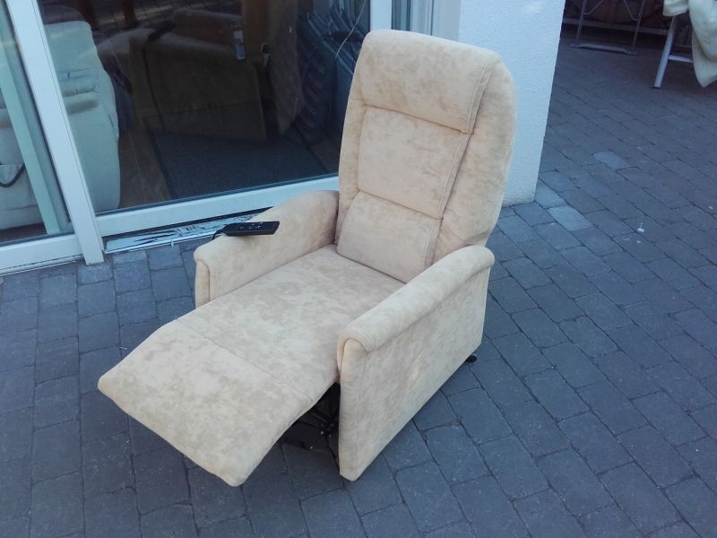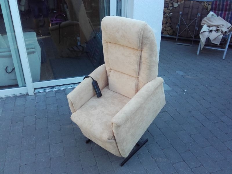 Neuwertiger Fernsehsessel aus dem Hause Himolla, Modell 9773 25Y14 mit Aufstehhilfe. Bezug Velour in der Farbe "SAHARA". Fernsehsessel mit Aufstehhilfe, einfache Bedienung über Fernbedienung. Sessel für kleinere Personen von 150cm bis 170cm Körpergröße, belastbar bis 110Kg Körpergewicht. Sehr komfortabel. Sessel steht auf Rollen und kann auch mal durchs Zimmer geschoben werden, bei der Aufstehhilfe stellt sich der Sessel auf einen Rahmen und kann dann nicht mehr verrutschen. Sehr komfortabel und einfach zu bedienen. Rückenteil und Fußteil einzeln zu steuern und Aufstehhilfe.