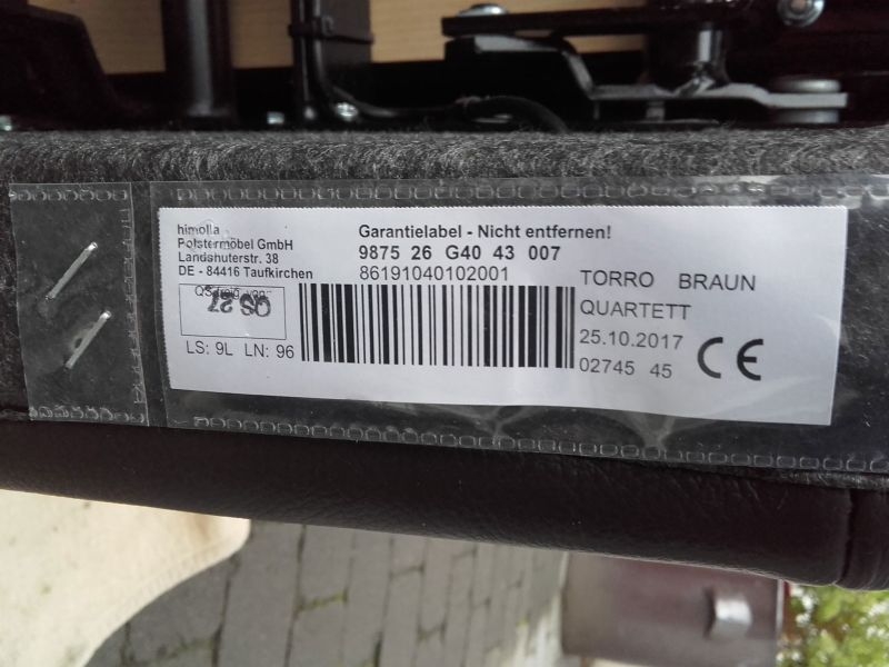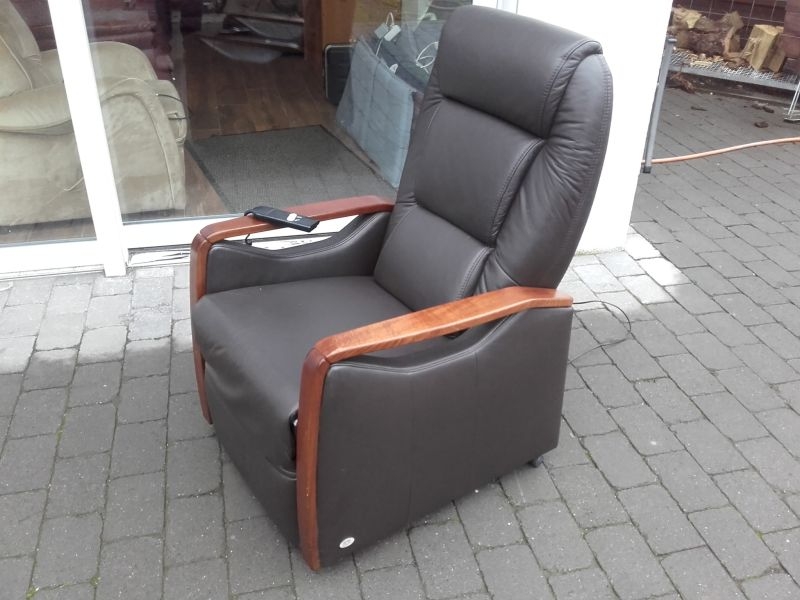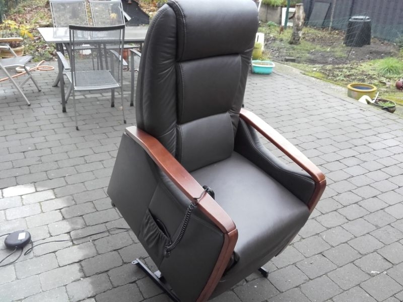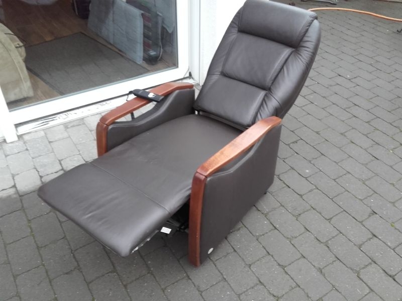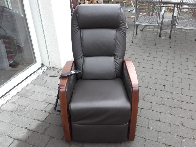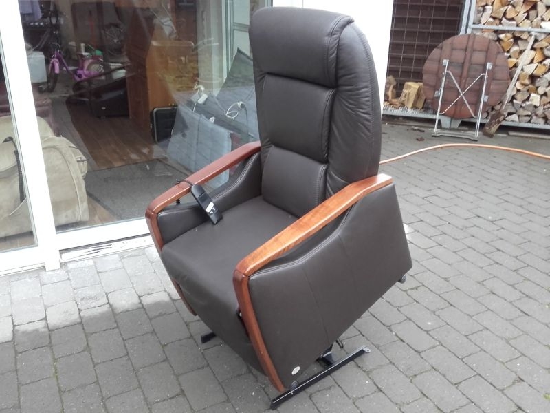 Fernsehsessel aus dem Hause Himolla, Modell 9875 26G40 mit Aufstehhilfe. Bezug Leder in der Farbe "TORRO Braun". Fernsehsessel mit Aufstehhilfe, einfache Bedienung über Fernbedienung. Aus Nichtraucherhaushalt. Sessel für kleinere Personen von 155cm bis 170cm Körpergröße, belastbar bis 110Kg Körpergewicht. Sehr komfortabel. Sessel steht auf Rollen und kann auch mal durchs Zimmer geschoben werden, bei der Aufstehhilfe stellt sich der Sessel auf einen Rahmen und kann dann nicht mehr verrutschen.