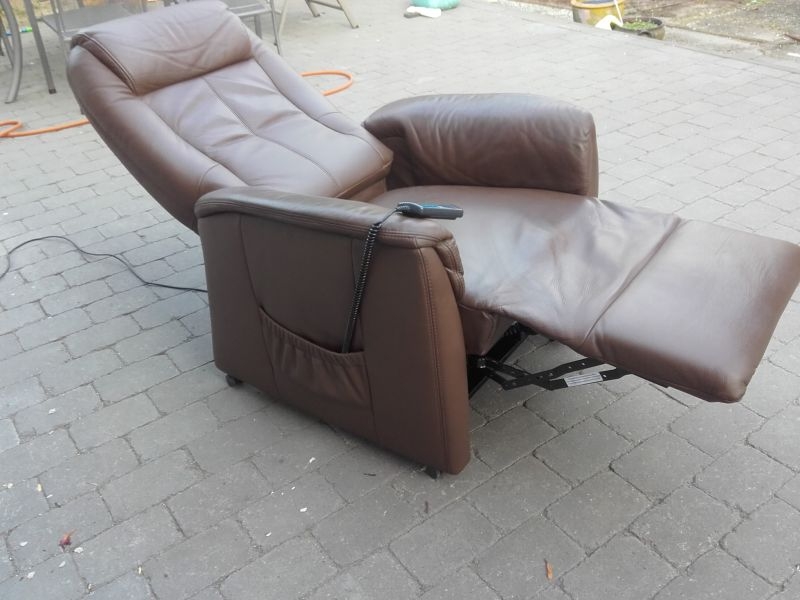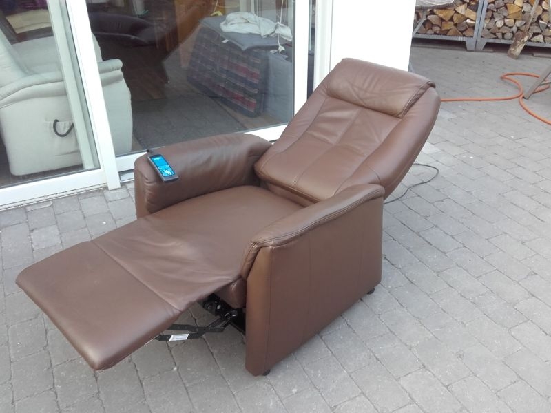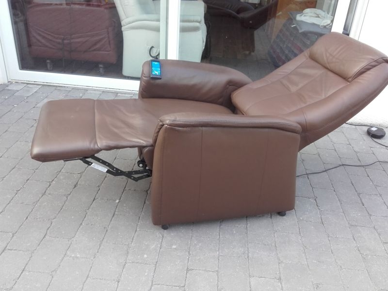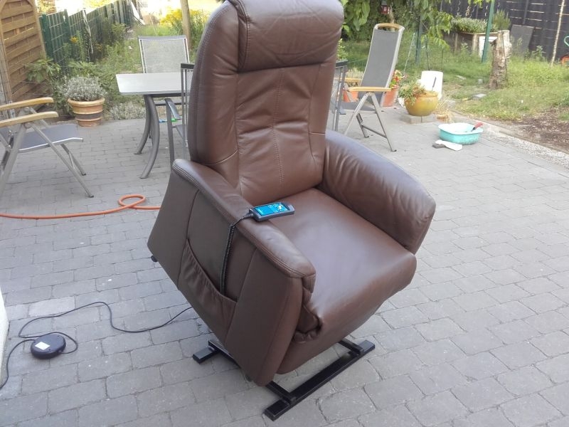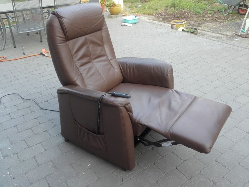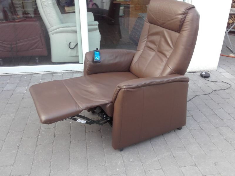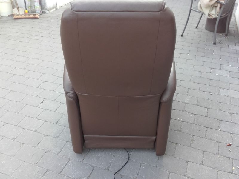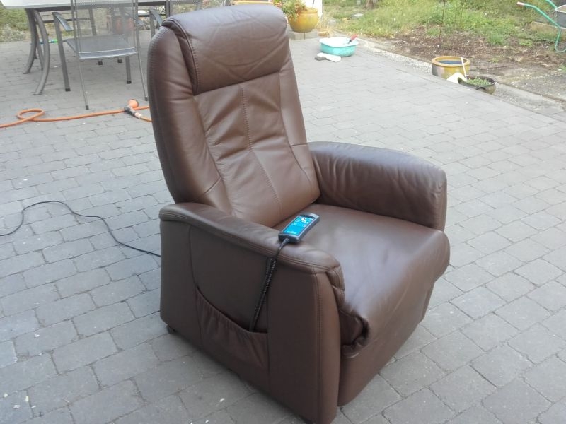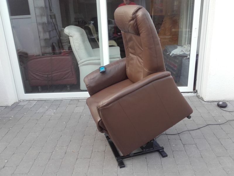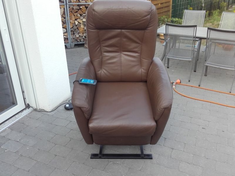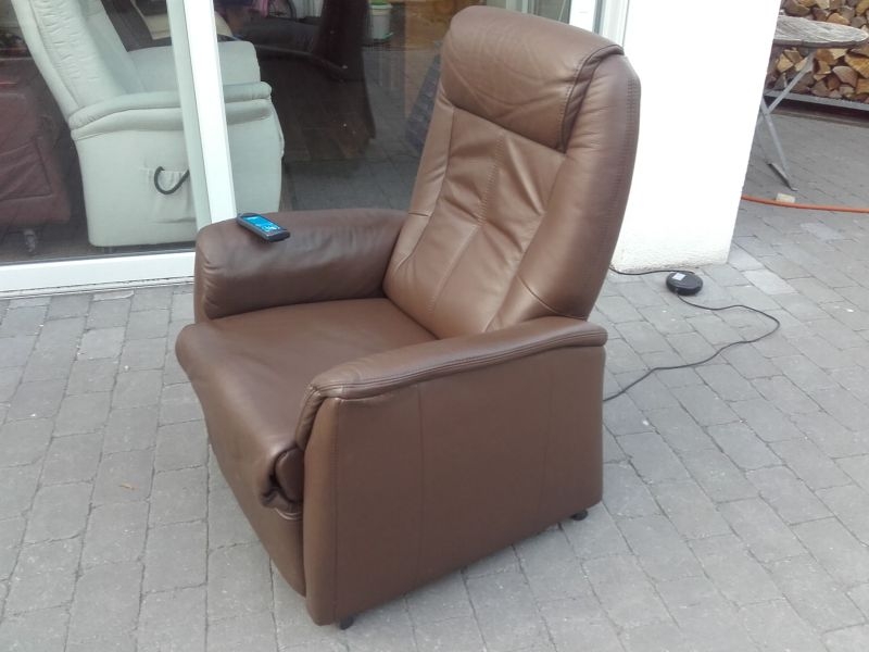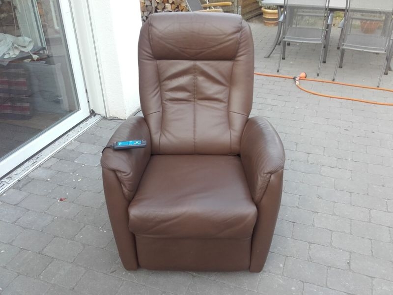 Fernsehsessel aus dem Hause Himolla. Sehr guter Zustand da der Sessel selten genutzt wurde, Modell 9107 23T42 Maxi mit Aufstehhilfe, für große Leute von 175cm bis 195cm Körpergröße, bis 150KG belastbar. Neupreis ca. 2798.-€. Bezug Leder Longru Farbton "ERDE". Fernsehsessel mit Aufstehhilfe, 3 Motoren für angenehmen Komfort. Einfache Bedienung über beleuchtete Fernbedienung. Rückenlehne und Beinablage jeweils einzeln anzusteuern Federkernpolsterung, sehr komfortabel. Sessel steht auf Rollen und kann auch mal durchs Zimmer geschoben werden, bei der Aufstehhilfe stellt sich der Sessel auf einen Rahmen und kann dann nicht mehr verrutschen.