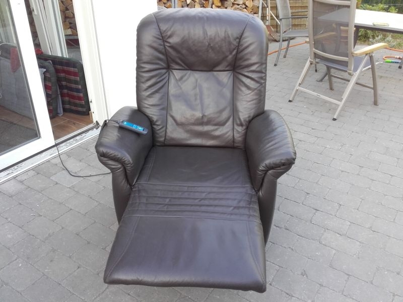 Großer XL-Sessel aus dem Hause Himolla bis 160KG. Modell 7706 24T40 Leder braun Farbton "SCHOKO". Guter Zustand, technisch einwandfrei. Sessel für große Menschen von 170cm bis 195cm breite Sitzfläche 55cm und bis 160KG belastbar! Betriebsanleitung vorhanden. Fernsehsessel mit Aufstehhilfe und Liegeposition, 3 Motoren für angenehmen Komfort, Fußteile, Rückenlehne und Aufstehhilfe einzeln steuerbar, Kopfteil manuell verstellbar. Bei der Aufstehhilfe stellt sich der Sessel auf einen Rahmen und kann dann nicht verrutschen. Der Sessel kann bis zu 160kg heben. Einfache Bedienung über beleuchtete Fernbedienung. Kommt aus tierfreiem Nichtraucherhaushalt
