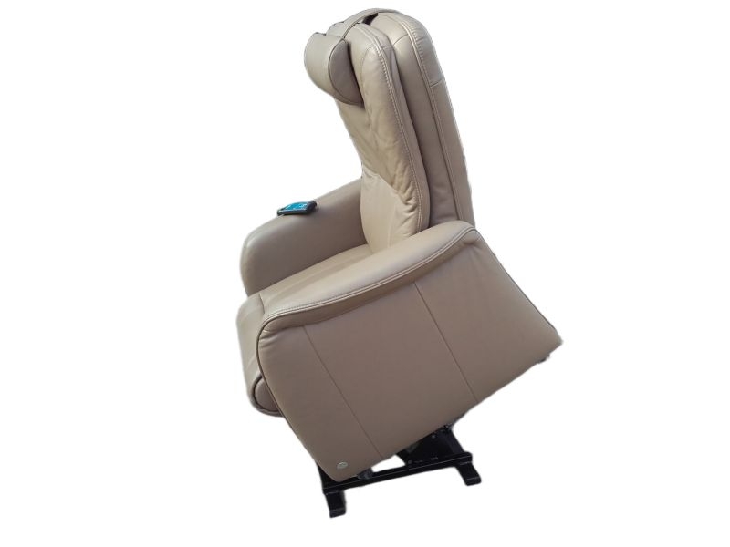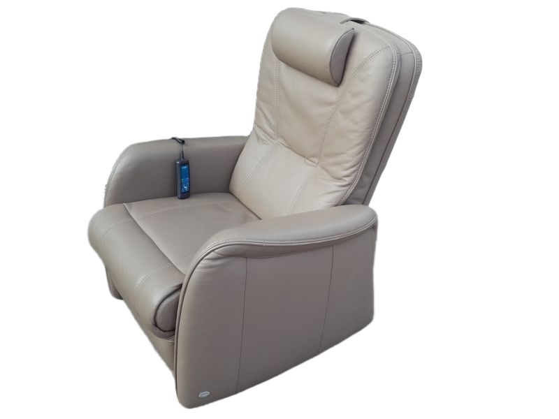 Neupreis ca. 3600.-€. Bezug Leder Longru Farbton "Beach". Fernsehsessel mit Aufstehhilfe, 3 Motoren für angenehmen Komfort. Einfache Bedienung über beleuchtete Fernbedienung. Rückenlehne und Beinablage jeweils einzeln anzusteuern, Fußstützenverlängerung und Federkernpolsterung, sehr komfortabel. Sessel steht auf Rollen und kann auch mal durchs Zimmer geschoben werden, bei der Aufstehhilfe stellt sich der Sessel auf einen Rahmen und kann dann nicht mehr verrutschen.