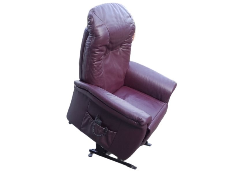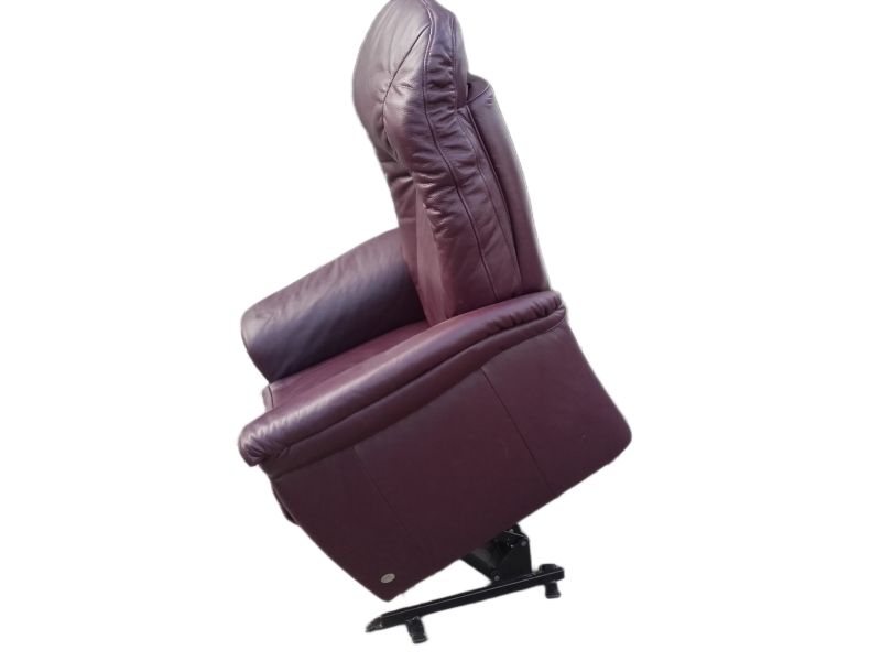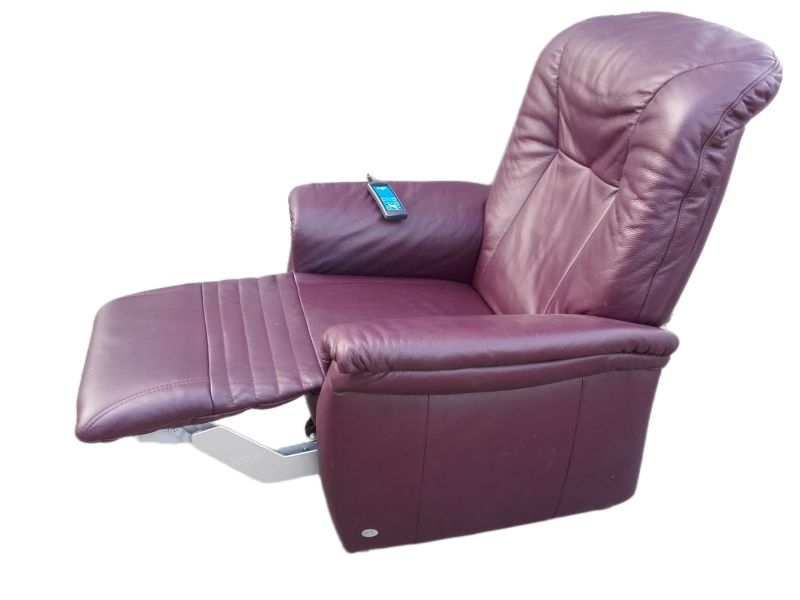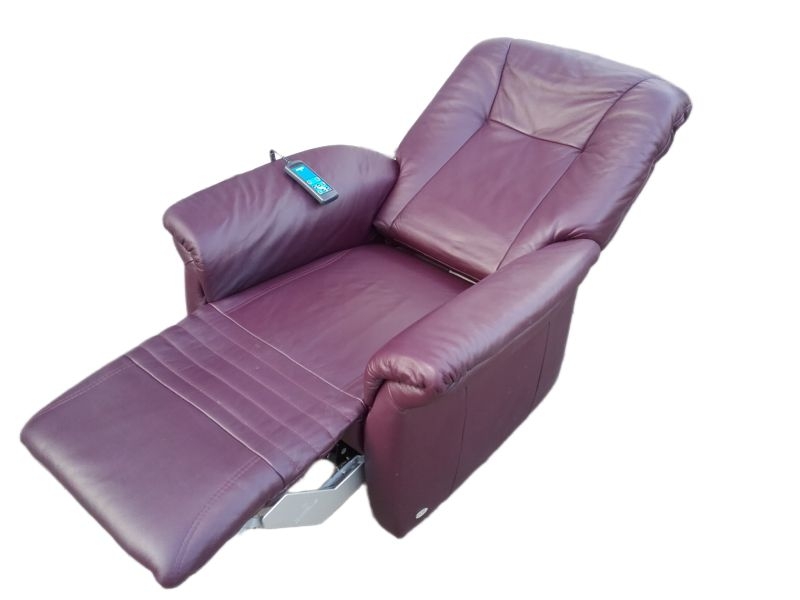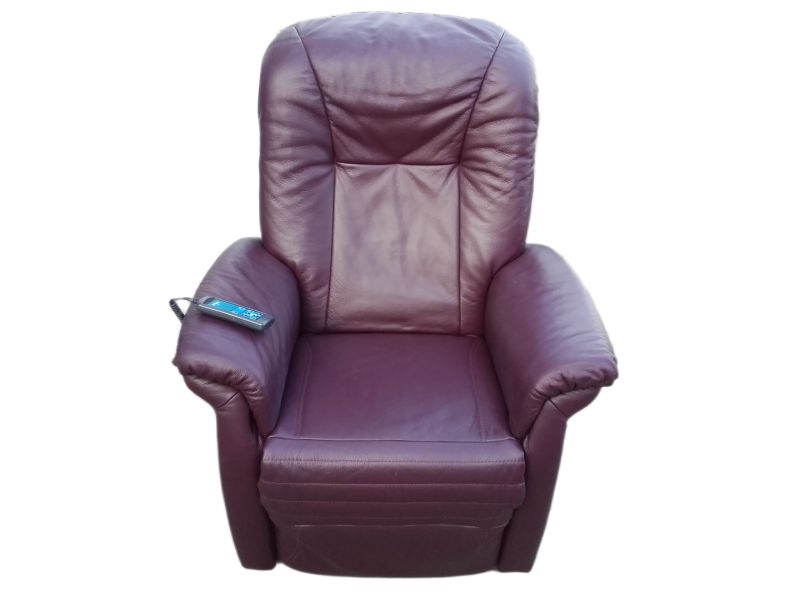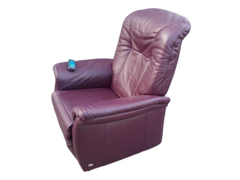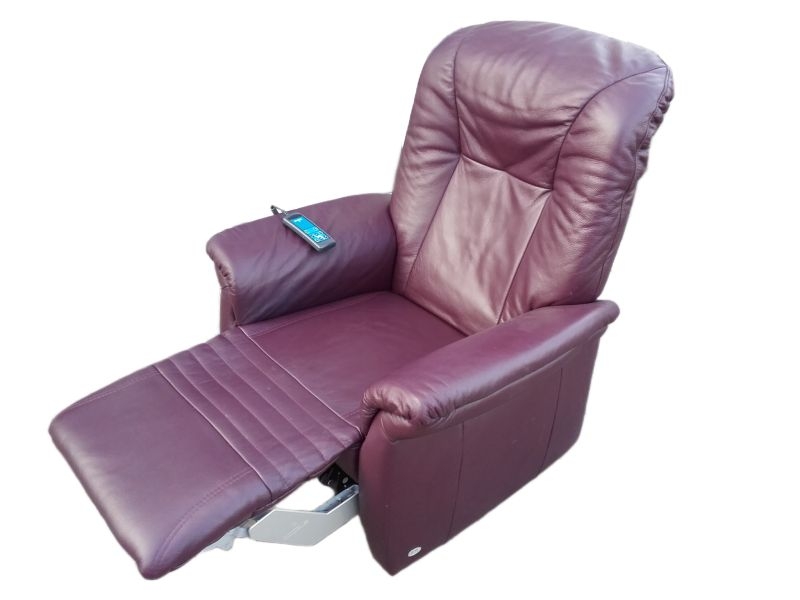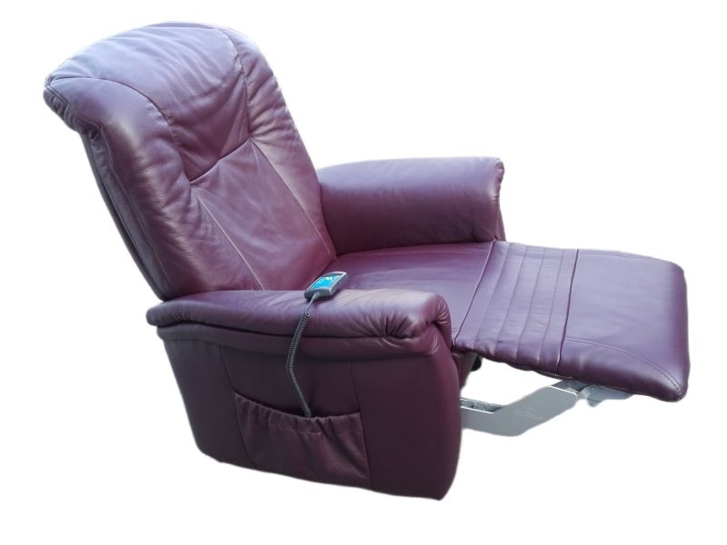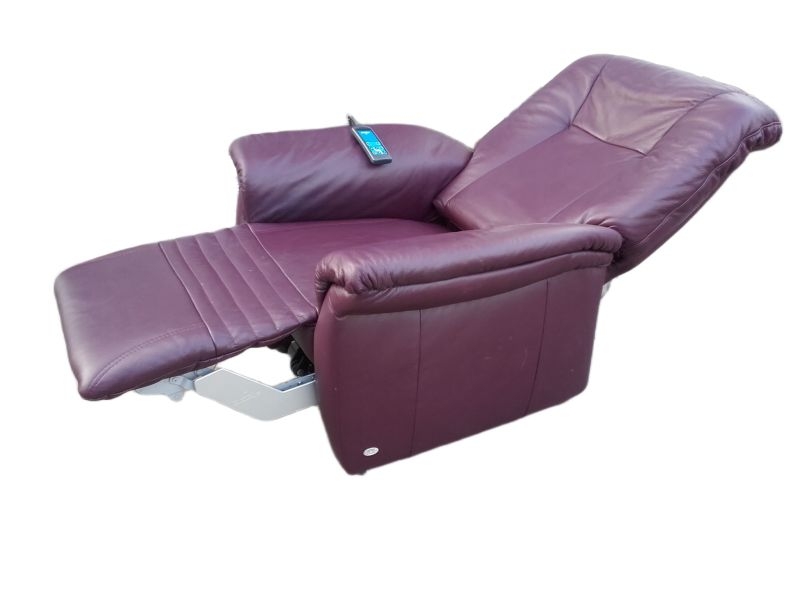 Modell 7706 mit Aufstehhilfe. Sessel für Menschen von 160-180cm bis 130KG belastbar! Sehr guter Zustand und technisch einwandfrei, Bezug : Leder Farbton PURPLE. Fernsehsessel mit Aufstehhilfe und Liegeposition, 3 Motoren für angenehmen Komfort, Fußteile und Rückenlehne einzel steuerbar! Das Kopfteil kann manuell verstellt werden. Bei der Aufstehhilfe stellt sich der Sessel auf einen Rahmen und kann dann nicht verrutschen. Einfache Bedienung über beleuchtete Fernsteuerung.